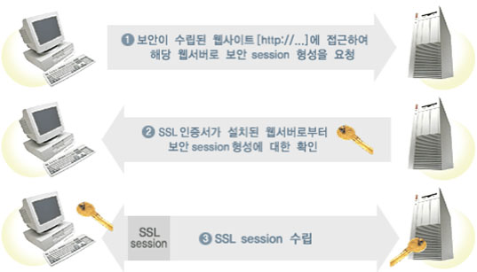 º¸¾È¼¹ö¶õ ÀÎÅͳݿ¡¼ »ç¿ëÀÚ PC¿Í À¥¼¹ö »çÀÌ¿¡ ¼Û¼ö½ÅµÇ´Â °³ÀÎÁ¤º¸¸¦ ¾ÏÈ£ÈÇÏ¿© Àü¼ÛÇÏ´Â ±â´ÉÀ» ¼öÇàÇÏ´Â ¼¹ö¸¦ º¸¾È¼¹ö¶ó°í ÇÕ´Ï´Ù. º¸¾È¼¹ö¸¦ ±¸ÃàÇÏ´Â ÇϳªÀÇ ¹æ¹ýÀ¸·Î º¸¾È ¼¹ö ÀÎÁõ¼(SSL) ¹æ½ÄÀÌ Àִµ¥, ÀÌ ¹æ½ÄÀº °³º° »ç¿ëÀÚ°¡ º°µµÀÇ º¸¾ÈÇÁ·Î±×·¥À» ¼³Ä¡ÇÏ´Â ¹ø°Å·Î¿òÀÌ ¾øÀÌ, À¥¼¹ö¿¡ ¼³Ä¡µÈ º¸¾È ¼¹ö ÀÎÁõ¼(SSL)¸¦ ÅëÇØ °³ÀÎÁ¤º¸¸¦ Àü¼ÛÇÕ´Ï´Ù. º¸¾È¼¹ö ±¸Ãà¿¡ ¼Ò¿äµÇ´Â ºñ¿ëµµ ´Ù¸¥ ¹æ½Ä¿¡ ºñÇØ »ó´ëÀûÀ¸·Î Àú·ÅÇÕ´Ï´Ù. |